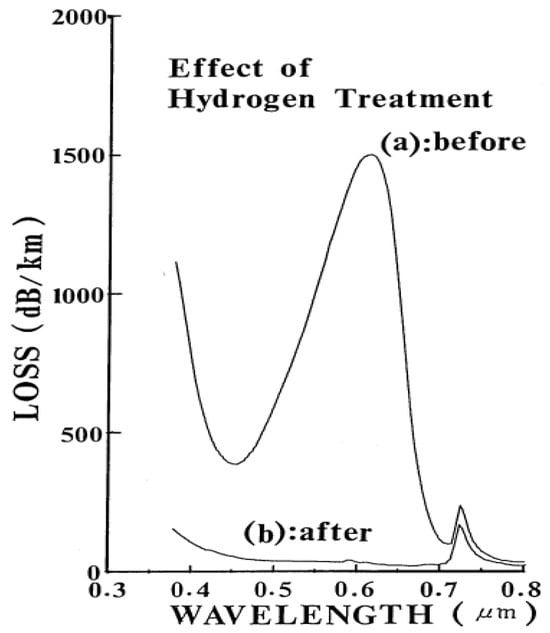 - Nagasawa, K.; Hoshi, Y.; Ohki, Y.; Yahagi, K. Improvement of radiation resistance of pure silica core fibers by hydrogen treatment. Jpn. J. Appl. Phys. 1985, 24, 1224. [Google Scholar] [CrossRef]