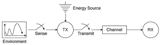 - GP Source: GP typically refers to power that is supplied through an electrical grid. Hence, GP-powered equipment does not have energy limitations. For instance, the robots and actuators in production line are connected to grid energy supply. The energy consumption of each equipment can be divided into two categories: (a) transmission energy consumed to transmit abstracted information to the BS and (b) computing energy used to process the collected data packets:where is the energy consumption coefficient depending on the chip of each IIoT equipment, is the number of central processing unit (CPU) cycles required for processing per bit data, assumed to be equal for all pieces of equipment and is the frequency of the CPU clock of each equipment [21].