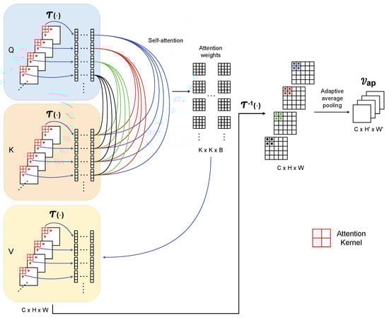 where represents a shape reverse operation. As a uniform Attention Kernel weight is assigned to the elements in the same patch due to the self-attention mechanism, an adaptive average pooling operation with an automatically selected stride and kernel size is used to gain more summarized local information: