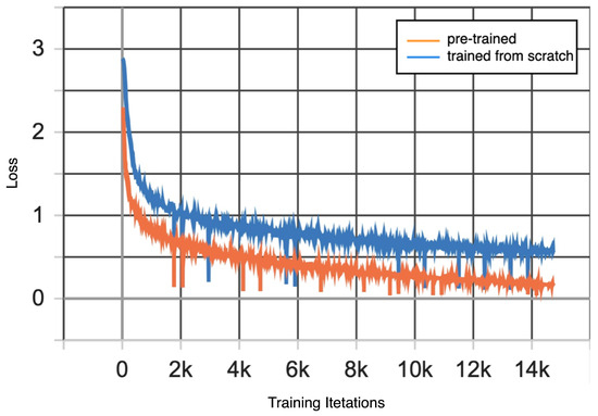 Compared with SensorNet5 trained from scratch (), the pretrained SensorNet4 with fine-tuning has better accuracy (), demonstrating its ability to transfer knowledge across similar tasks. Figure 5 illustrates that the pretrained SensorNet4 with fine-tuning (the orange curve) has better convergence and lower loss values compared to SensorNet5 trained from scratch (the blue curve).