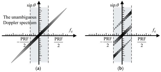Figure 2. Spatial–time spectrum without and with Doppler ambiguity. (a) Without Doppler ambiguity. (b) With Doppler ambiguity.