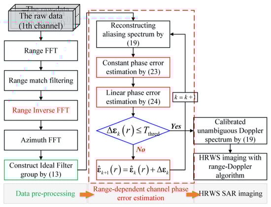 Figure 3. The flowchart of HRWS SAR imaging with range-dependent channel phase calibration.