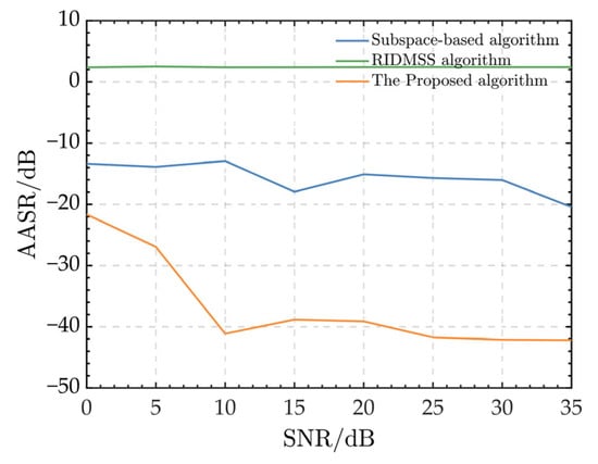Figure 7 depicts the AASR curves of several algorithms with varying SNRs.