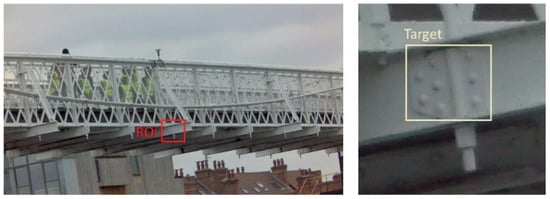 Image frame with an ROI (left) and ROI with a target (right) [82].