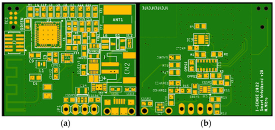 Wristband’s PCB design: (a) Top side, (b) Bottom side.