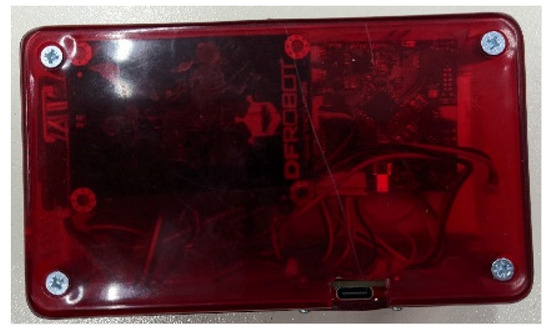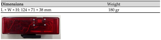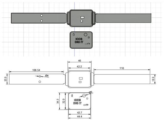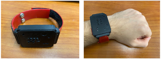 - Power Management Unit: The wristband should be able to operate continuously for the whole period of a miner’s shift (8–10 h) and be re-used every day for many months. To achieve that, a power management unit that consists of a stable charging and overvoltage protection circuit along with a lithium polymer recharging battery is integrated. Using this capability, the end users (miners) can recharge the wristband after the completion of every shift by simply plugging in a charger via a USB cable. Furthermore, a buck–boost DC/DC voltage converter that outputs 3.3 V and a step-up DC/DC converter that outputs 5 V have been used to supply appropriately the MCU and sensors. Another important part of the power is the magnetic reed switch. The magnetic reed switch works as a power switch for the smart wristband and connects or disconnects the battery with the rest of the circuit.