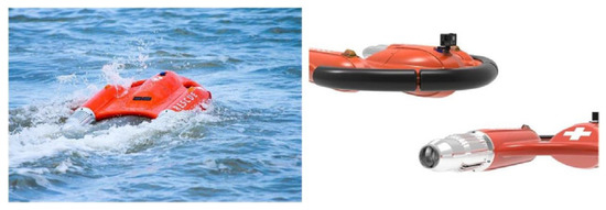Our research focuses on an intelligent surface object detection method tailored for dark conditions, exemplified by the “Dolphin I” surface lifesaving robot. This method aims to support search and rescue operations using “Dolphin I”, necessitating high accuracy and real-time capabilities. As illustrated in Figure 1, the “Dolphin I” is a model of a small aquatic lifesaving robot developed by the Zhuhai Yunzhou Intelligent Technology Company, designed for use in various drowning rescue scenarios such as swimming pools, reservoirs, rivers, and beaches.