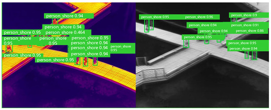 The thermal-image water object dataset was split into training and testing sets with an 80:20 ratio, resulting in 4589 images for training and 1147 for testing. We set the training to 300 epochs and monitored the loss value of the training set, employing early stopping to ensure the network was adequately trained to convergence when changes became negligible over an extended period.