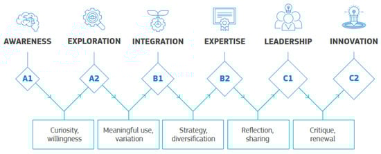 DigCompEdu progression model based on CEFR levels [11].
