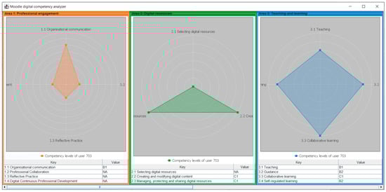 A radar-chart view of the results of the analysis of a teacher’s digital competence.