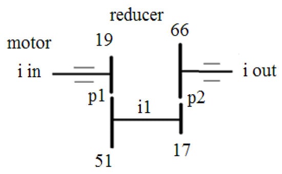 The actual speed reducer ratio ir = iin/iout is 10.421, and the relation between the input and output turning speeds (derived from the teeth numbers of the two gear pairs) is expressed in Equation (5).