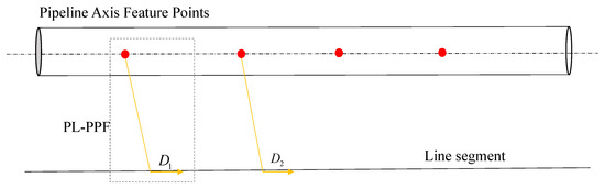 In the equation, represents the average value of , where d is the distance from the rivet vertex to each point on the line segment, and , , and represent the distances from , , and , respectively. The subscript i of depends on the number of pipeline axis feature points.