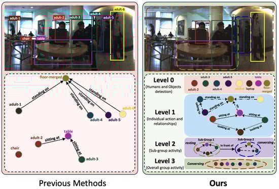 Contributions: The main contributions of our work are threefold. First, we introduce a novel dataset (the dataset is available for verification at https://uark-cviu.github.io/GASG/) with nuanced attributes that aid the scene graph generation task in the group activity setting. Second, our work advances the state of the art in predictive video scene understanding by introducing flow–attention and redefining attention mechanisms via incorporating hierarchy awareness. Third, we demonstrate the effectiveness of our approach through extensive experiments and achieve state-of-the-art performance over the existing approaches.
