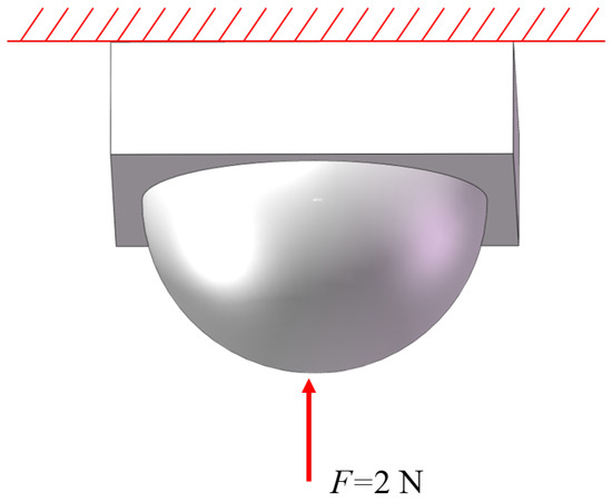 The robotic finger used in this study, as shown in Figure 1, consists of three phalanges. The inner side of the distal phalanx is selected for the fitting and installation of the tactile sensor. Considering the sensor’s dual-layer layout, the upper hemisphere structure of the tactile sensor is estimated to have a size of approximately R = 3 mm, while the lower rectangular prism measures .