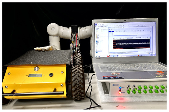 The dynamic detection platform for the experiment of sliding tactile sensing is composed of demodulation equipment, FBG sensing elements, an intelligent driving car, and a computer. After the sensor is packaged, it is pasted on the surface of the robot fingers. The surface of the car is pasted with different materials such as sandpaper to increase the friction and improve the sensitivity of FBG to the sliding signal. The intelligent driving car moves forward at a constant speed for the sliding experiment. When the object contacts the surface of the elastic body and slides relatively, the center wavelength of FBG will drift correspondingly. The monitoring software in the upper computer can record the change value of the center wavelength in real time. The physical diagram of the detection platform is shown in Figure 7.