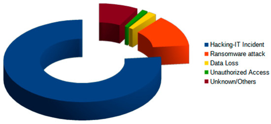 Healthcare cyberattacks affect multiple aspects in terms of the financial and organizational, as well as on personal levels, and the main reason for most of the crippling effects is hacking-IT incidents. In terms of financial aspects, this results in devastating capital losses due to fraud and ransoms. Organizational impact, in terms of losing the image as a safe institute that safeguards patients’ private data and losing trust in the long run, leads to a reduction in productivity, as the IT operations are disrupted by ransomware and data leaks. On a personal level, many individuals suffer from identity theft and financial loss [38].