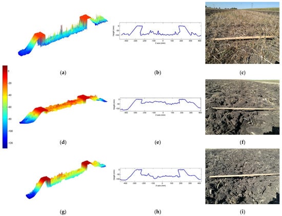 where hr is the reference height from the rotation center of the LIDAR to the point pi on the soil surface. Within the measurement span width of the LiDAR, all the soil surface was tilled for the roller-basket down and the roller-basket up settings.
