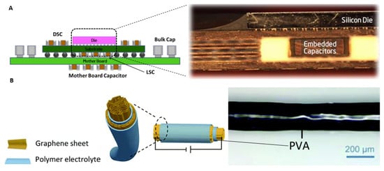 - Min, Y.; Olmedo, R.; Hill, M.; Radhakrishnan, K.; Aygun, K.; Kabiri-Badr, M.; Panat, R.; Dattaguru, S.; Balkan, H. Embedded capacitors in the next generation processor. In Proceedings of the 2013 IEEE 63rd Electronic Components and Technology Conference, Las Vegas, NV, USA, 28–31 May 2013; IEEE: New York, NY, USA, 2013; pp. 1225–1229. [Google Scholar]