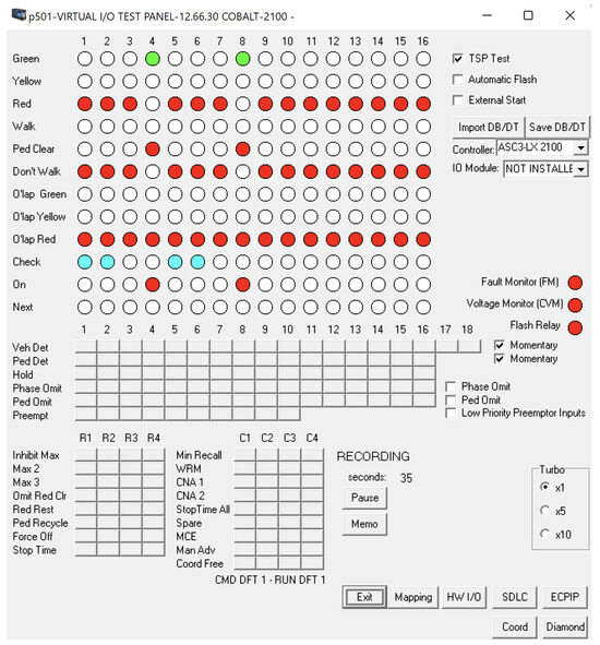 The evaluation of LIDATS can be divided into system tests and digital twin readiness. We conducted five tests: four using the Econolite traffic signal controller simulator (Econolite, Anaheim, CA, USA), and one using an Econolite ASC/3-2100 to validate the effectiveness of our approach. This simulator is capable of emulating a traffic signal controller in functionality, appearance, and interface. The simulator accepts SNMPGET and SNMPSET messages and uses the same OIDs as the ASC/3-2100, allowing us to assess the performance of our method accurately.