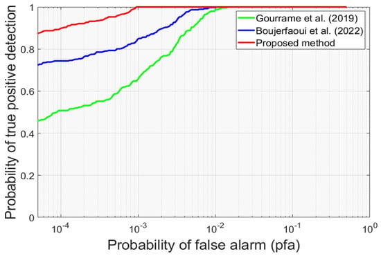 ROC curves comparison of the proposed method and methods in [,].