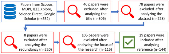 The search method for this research was based on [28]. Different databases such as MDPI, IEEE Xplore, Science Direct, and Google Scholar have been utilized, and some others were also explored because of several limitations (e.g., the article is only accessed in specific databases) after analyzing the reference lists. Several criteria (specifically for V2X communication) for articles have been defined for inclusion in this survey, as follows: