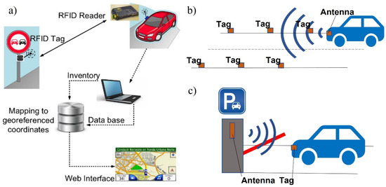 RFID usage possibilities (a) road signs; (b) tunnels; and (c) parking places [31].