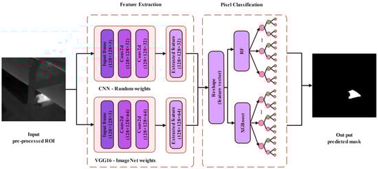 - A hybrid model based on the pre-trained VGG16 CNN architecture as a feature extractor and RF and XGBoost as classifiers was introduced to industrial CM to perform semantic segmentation tasks on IR image datasets.