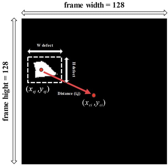 According to Figure 5, Oth represents the centroid of segmented thermal anomalies in each frame, and and represent the centers of the segmented areas. Moreover, and represent the width and height of the segmented areas, respectively [].