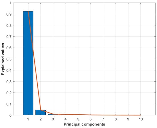 A scree plot was used to check the optimal number of principal components required to explain a sizable amount of variation in the data. From Figure 15, it can be seen that almost 99% of the variability is explained by three principal components, and the remaining principal component explains less than 1% of the variability. Therefore, three principal components were chosen for further analysis and classification.