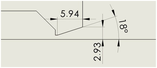 This is a variant where the nozzle is fully open in the shape of a cylinder with a diameter corresponding to the output cross-section of the nozzle with an angle of 18° (Figure 3).