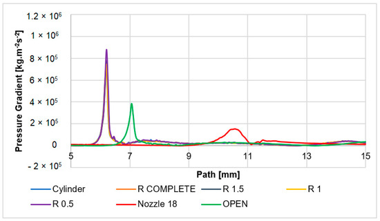 Pressure gradient distribution of Nozzle Cylinder with R Complete variant.