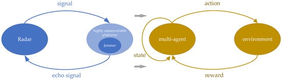 Reinforcement learning (RL) theory has been widely applied to the research of intelligent antijamming decision-making problems in radar. It is a branch of machine learning aimed at enabling agents to take appropriate actions to obtain high rewards [6,7]. The development and maturity of RL-related theories have significantly enhanced radar situational awareness, autonomous learning, and decision-making capabilities [8,9,10,11]. Introducing RL into the radar antijamming field and optimizing radar antijamming strategies through collecting interaction information between radar and jammer can improve the intelligence of radar antijamming decision-making capability [12,13,14].