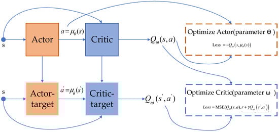 The DDPG algorithm is a method capable of effectively solving or approximating the optimal policy. Its algorithmic structure is illustrated in Figure 4.