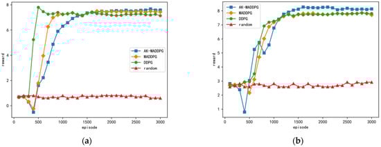 Traditional RL struggles to handle problems with excessively large state spaces or continuous action spaces. Deep reinforcement learning (DRL) combines deep neural networks with RL, using neural networks to approximate value functions or policy functions to address the shortcomings of traditional RL [15]. For example, Deep Deterministic Policy Gradient (DDPG) is a DRL algorithm based on actor-critic networks that perform well in policy optimization problems [16,17]. The Multi-Agent Deep Deterministic Policy Gradient (MADDPG) algorithm extends the DDPG algorithm to the multi-agent domain, introducing other agents’ actions as additional information to obtain Q-value functions [18].