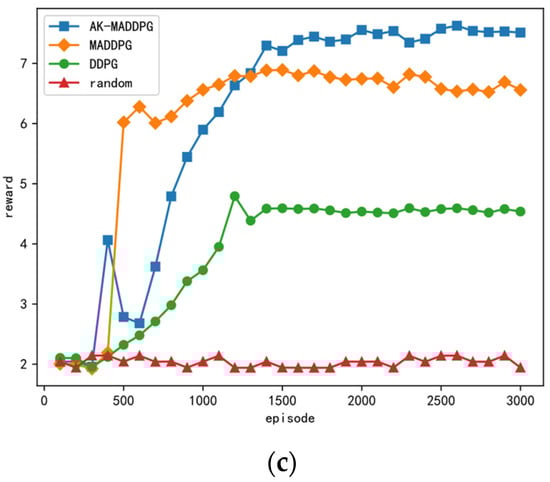 - Conducted simulation verification. Under the complex jamming conditions of three mixed jamming strategies, compared with traditional random hopping strategy methods, and classical single-agent reinforcement learning DDPG- and MADDPG-based methods, the proposed method in this paper exhibits better antijamming performance.