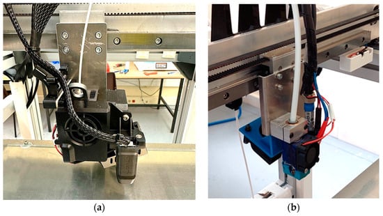 Extruder heads used in the case study: (a) commercial (E1); (b) proprietary (E2).