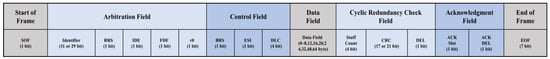 The CAN-FD data frame is illustrated in Figure 2, which includes several critical components [,,]: