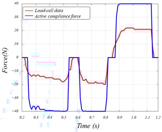 The developed in-pipe inspection robot operates by rotating the MFL inspection module through two MFL rotation units. When the robot travels along the pipeline, there are instances where the robot’s center does not align with the center of the pipeline. Therefore, a controller was designed to comply with disturbances by generating a certain amount of force in the direction indicated when the observed load values measured by the load cell installed on the MFL rotation unit exceed a specific threshold.