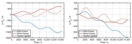 The navigation error, Δp, which indicates the pure inertial navigation position error, is adopted and calculated using Equation (20).