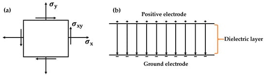 (a) 2D stress components, (b) The electric field in the dielectric layer.