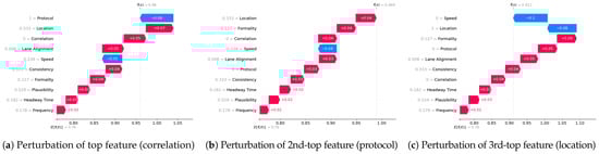 - Robustness: This metric validates the invariance of explanations to minor perturbations in the input features. Robust techniques should exhibit insensitivity to inconsequential noise or distortions in the data. The robustness of an XAI method refers to its ability to provide consistent explanations even when there are small changes in the data. These changes could be due to errors or intentional attacks. In our study, we used an adversarial model inspired by previous research [22]. This model involves training one biased model that relies heavily on a single feature and another model with all features, including a new one engineered to deceive the XAI explanation method. By generating explanations for normal samples that seem convincing but are actually misleading, there is a risk of compromising the framework’s integrity. This could lead to misidentifying an anomalous AV as a normal one, as the explanations may not accurately reflect the underlying behavior of the autonomous vehicle.