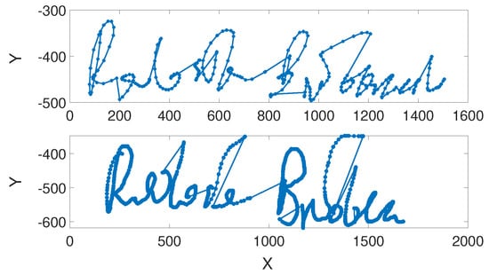 - Martinez-Diaz, M.; Fierrez, J.; Freire, M.; Ortega-Garcia, J. On the effects of sampling rate and interpolation in HMM-based dynamic signature verification. In Proceedings of the Ninth International Conference on Document Analysis and Recognition (ICDAR 2007), Curitiba, Brazil, 23–26 September 2007; Volume 2, pp. 1113–1117. [Google Scholar]
