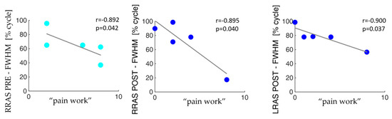 The correlation analysis highlighted that, in the pre-surgery condition, the pain tends to decrease as the overall activity of the analyzed muscles increases. Additionally, after vertebroplasty, the only activation parameters that show a negative correlation with pain are , , , and considering both sit-to-stand and lifting. This decrease in the number of negative correlations between the activation of the muscles of interest and the pain interfering items may reflect the stabilization process achieved by vertebral consolidation surgery.