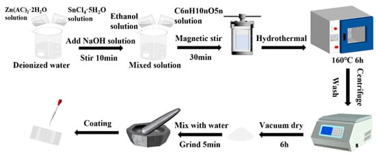 Preparation process diagram of carbon/ZnSn(OH)6 sensor.