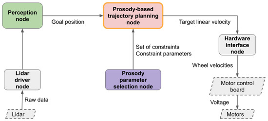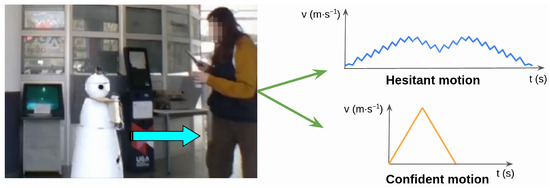 Recent works in robotics have been carried out on the topic of functional expressive motion generation [7], whereby subtle aspects of a robot’s movement can be modified to express the robot’s intentions or emotions while simultaneously executing a task. In [8], it was shown that a humanoid robot arm handing over an object with a rude or gentle attitude could influence the human interacting with the robot. While algorithms have been proposed to generate legged robot movements expressing emotions such as happy or sad [9], navigation algorithms for mobile robots focus on other dimensions such as naturalness and comfort [10,11,12,13]. These dimensions are different from social attitudes such as aggressiveness, hesitancy, or politeness, whose impact on human interactions has been studied, particularly in the field of vocal prosody [14,15]. It is unknown which movement features may lead to different perceptions of social attitudes in mobile robots, and existing navigation algorithms are not able to adjust the robot’s motion so that it generates different perceptions of social attitudes. This lack of understanding of the social perception of robot motion, and the inability to adjust navigation features, may be partly responsible for the low acceptance that can be observed when mobile robots are deployed in real environments [16,17].