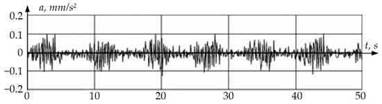 The measurement result was a set of time-digital sequences of vibration accelerations a = f[n] (see Figure 11). Discrete values of vibration accelerations were recorded at the t0, t1, t2, …, tN−1 time instants.