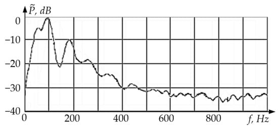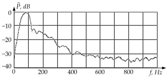 Figure 12 shows the digital spectral analysis results for a vibration sensor with excitation of a single rod-shaped sensitive element on flat membrane elastic suspensions (linear oscillations with a frequency fI = ΩI/2π ≈ 100 Hz).