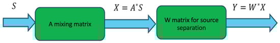 ICA is a computational method based on statistical principles that aim to identify statistically independent and non-Gaussian factors or components within multidimensional data. Its classic problem is the cocktail party problem, which explores how humans can focus on specific conversations in a noisy cocktail party environment. The critical assumption of ICA is that the sources of signals are statistically independent, which holds in many cases of blind source signal separation. Even when this assumption is not fully met, ICA can still be utilized to achieve statistical independence among observed signals. ICA serves as a technique for blind source separation, where the aim is to find an appropriate separation Matrix W to compute independent-source Signal Y from a mixture of signals, as illustrated in Figure 2. A represents the unknown mixing matrix, while X and S represent the n-dimensional observed mixed and unknown source signals, respectively [14].