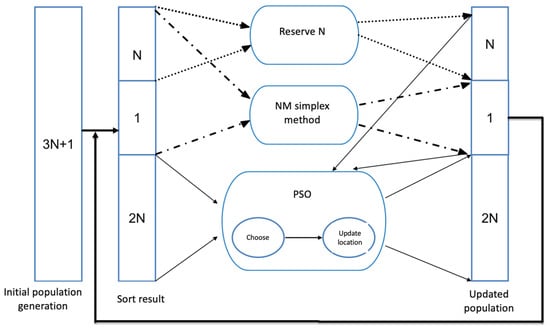 The detailed steps of the NM-PSO algorithm (as depicted in the flowchart in Figure 4) are as follows (the parameter settings are shown in Table 1):