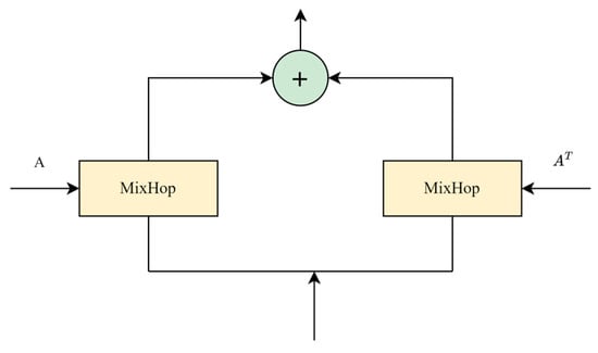To reduce computational complexity in MTGNN, the normalized weighted graph adjacency matrix, which is learned by the graph learning layer and is asymmetric, is made asymmetric by multiplying it with the upper triangular matrix, . The formula is provided in Formula (23).